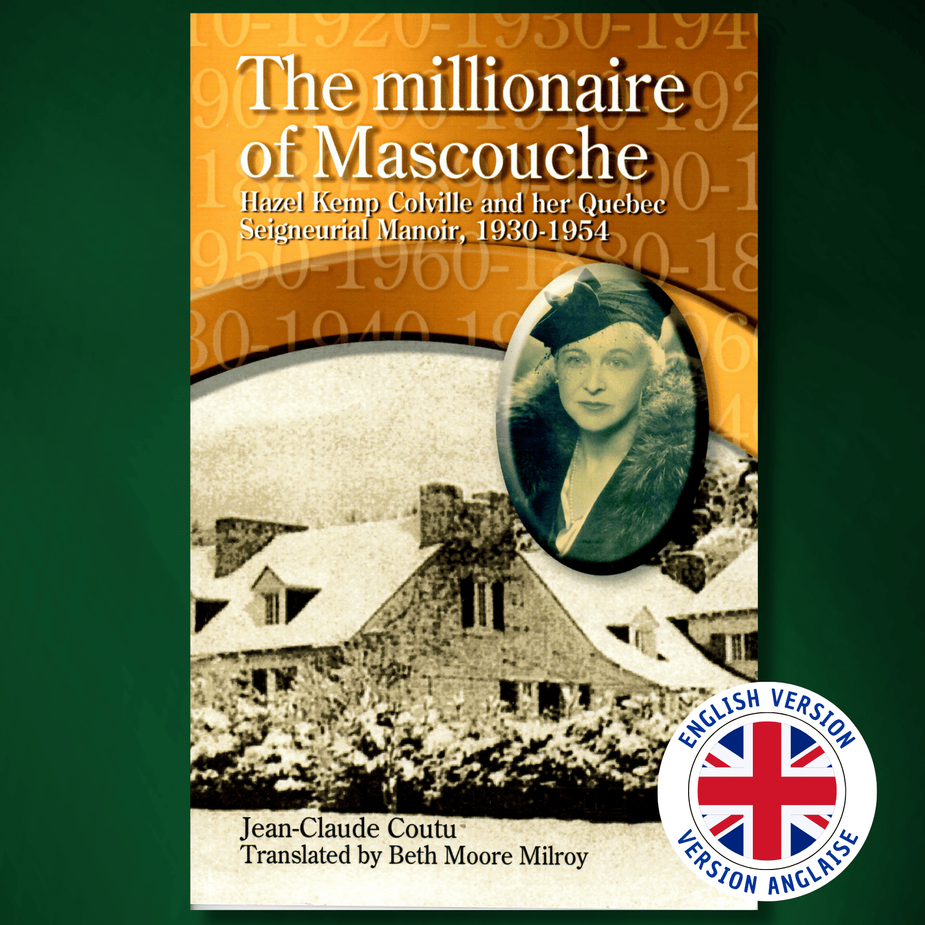 Dans ce livre, le chercheur Jean-Claude Coutu s’intéresse à Mme Hazel Beatrice Kemp Colville, la riche Montréalaise qui acheta le Domaine seigneurial de Mascouche en 1930 et qui rénova le Manoir pour lui donner l’apparence qu’on lui connait aujourd’hui.