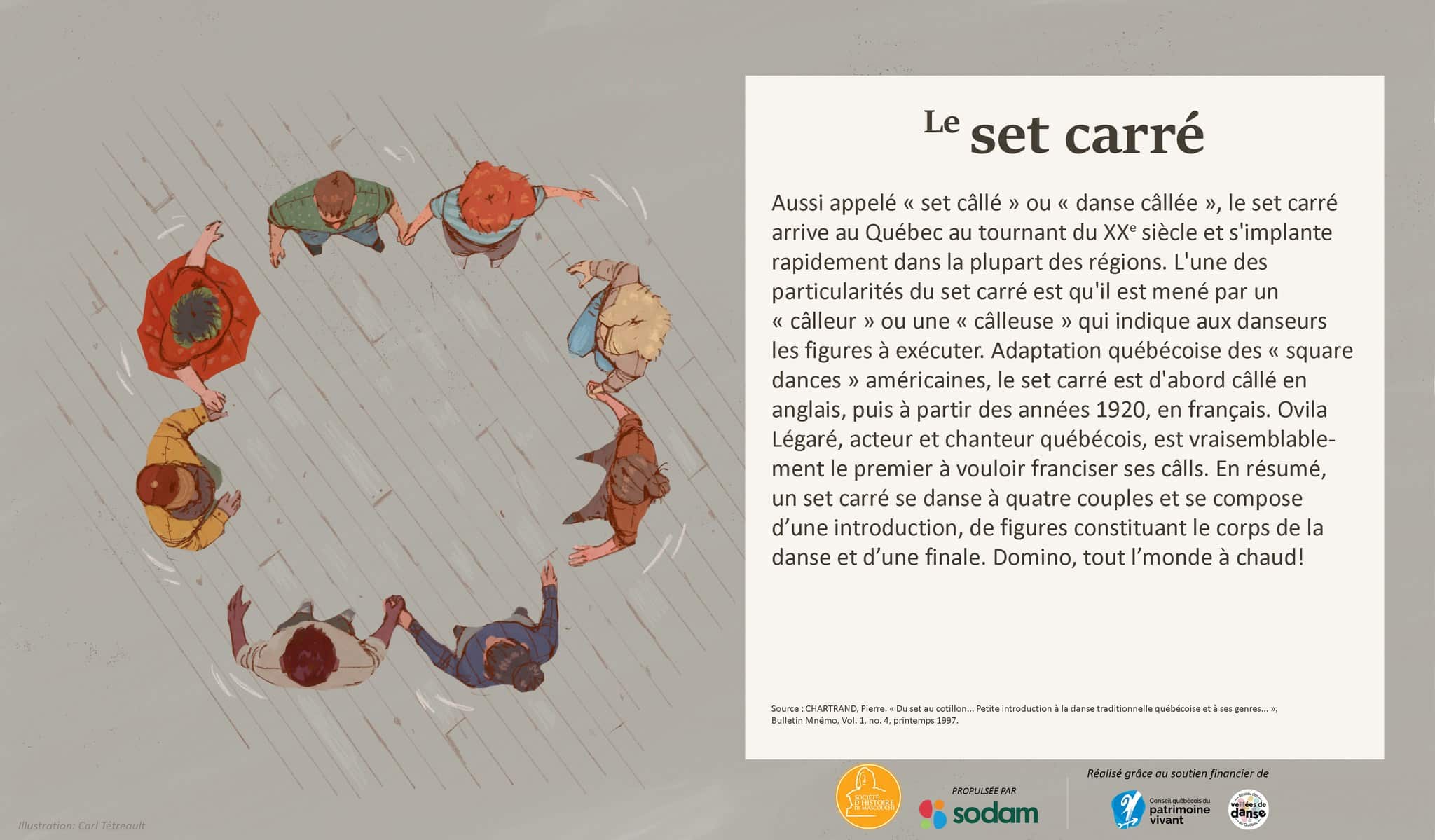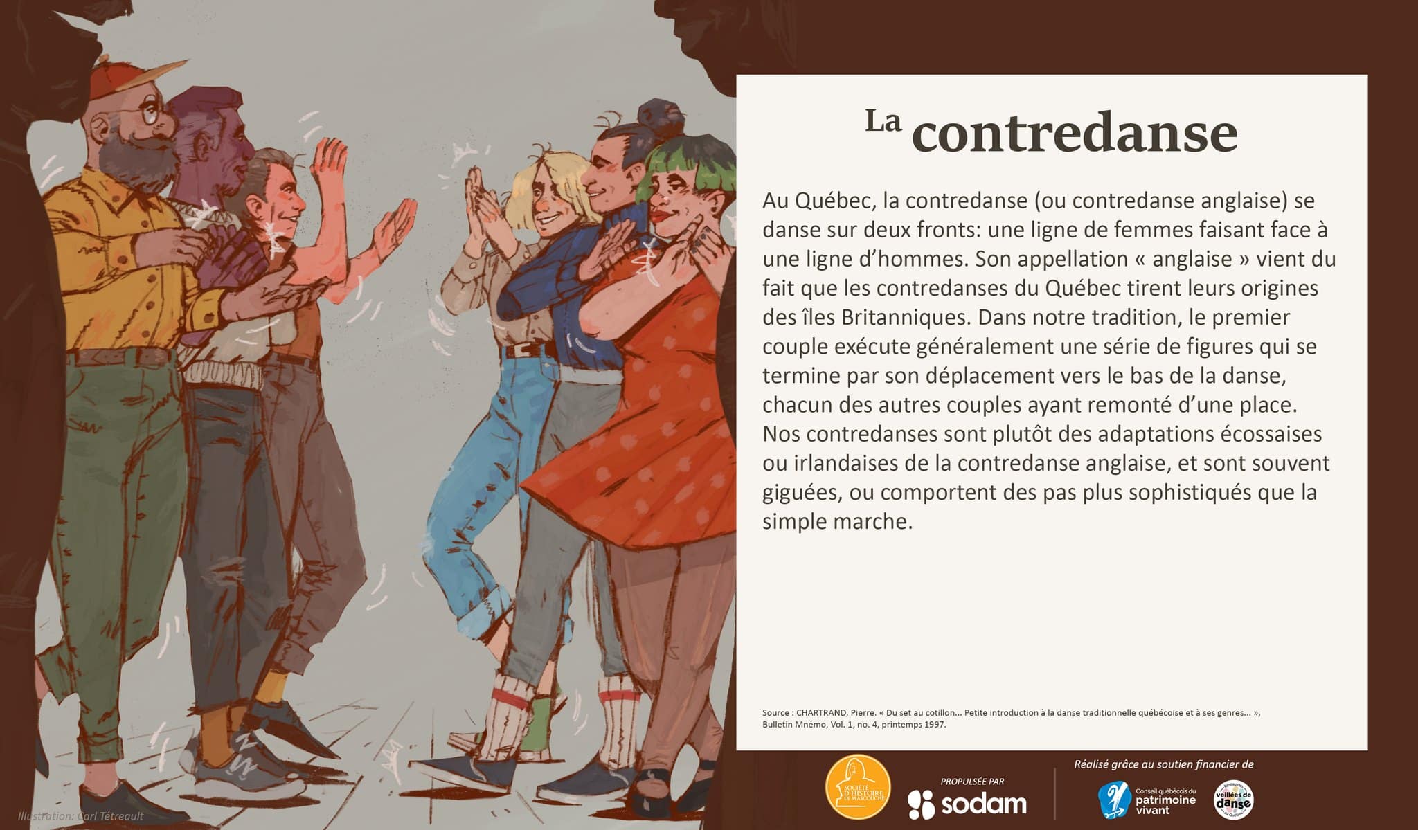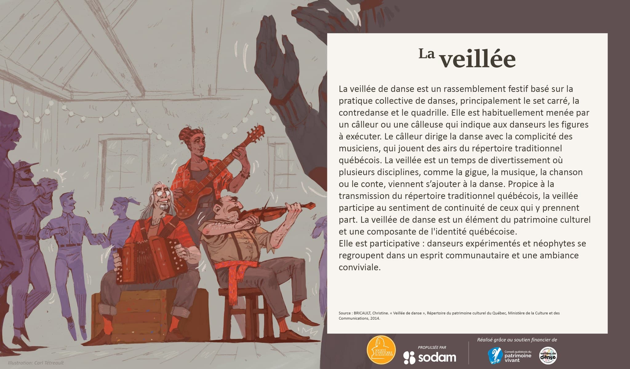 Dans le cadre de son projet de la P’tite veillée de la Grande Tribu, la Société d’histoire de Mascouche a réalisé six capsules vidéo éducatives et six fiches illustrées afin d’initier le grand public à cet élément de notre patrimoine immatériel québécois qu’est la veillée de danse.